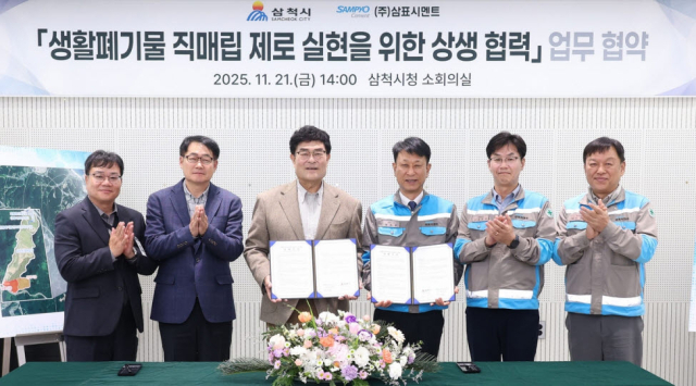 삼표그룹(회장 정도원)의 주력 계열사인 삼표시멘트는 삼척시와 '생활폐기물 직매립 제로 실현을 위한 상생협력' 업무협약을 했다고 25일 밝혔다.