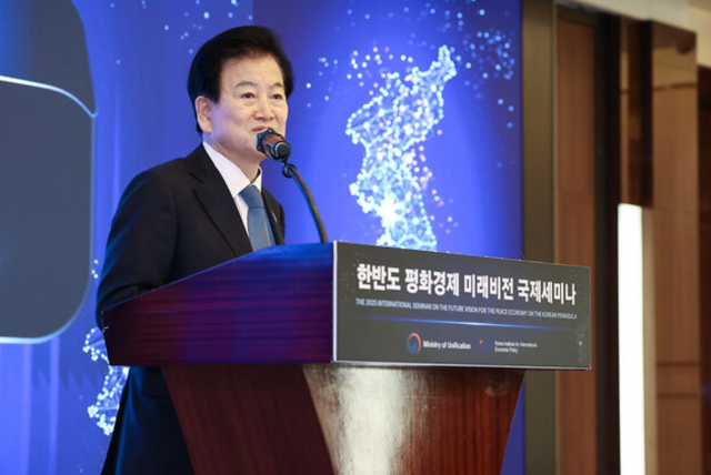 앞서 정 장관은 이날 오전 통일부가 주최하고 대외경제정책연구원이 주관하는 '한반도 평화경제 미래비전 국제세미나'에서 축사를 통해 남북관계를 비롯한 한반도 정책에 있어 남한 정부의 자율성을 강조한 바 있다.