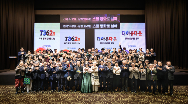 전북겨레하나는 창립 20주년을 맞아 지난 24일 오후 전주 그랜드힐스턴호텔에서 ‘스물, 평화로 날아’라는 주제로 기념 행사를 가졌다.