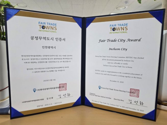 인천광역시는 (사)한국공정무역마을위원회로부터 ‘공정무역도시 4차 재인증’을 획득하며 국내 공정무역 선도 도시로서의 입지를 확고히 다졌다.