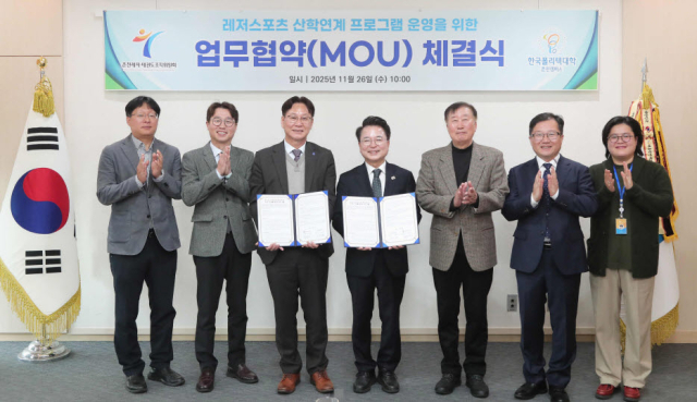 (재)춘천레저‧태권도조직위원회(위원장 육동한)가 26일 시청 접견실에서 한국폴리텍대학 춘천캠퍼스(학장 지경배)와 레저스포츠 산학연계 프로그램 운영을 위한 업무협약을 체결했다.