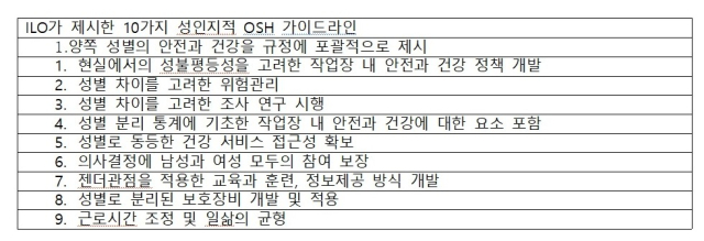 해외 지침이 말하는 산업안전에서 '젠더 관점'의 필요성