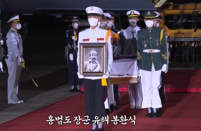 지난 2021년 8월 15일, 독립투사 홍범도 장군의 유해는 공군전투기 6대의 엄호 비행을 받으며 국내에 봉환됐다.