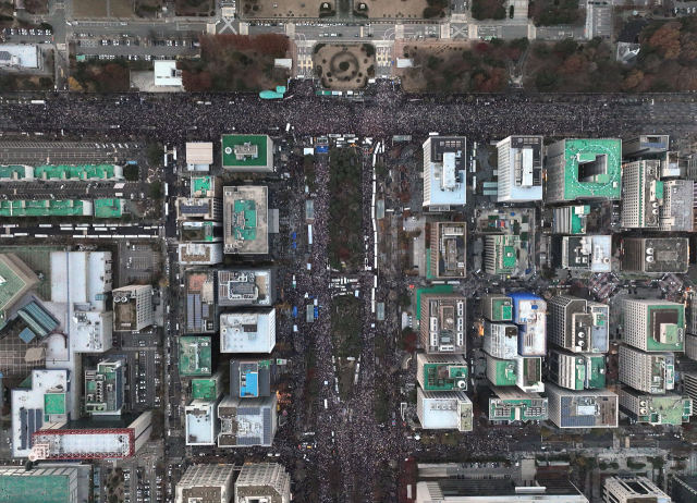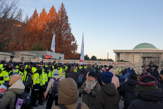 그 속에서 마이크를 잡은 사회자는 "이 도발은 일주일로 끝나고 말 것이다. 오늘 우리가 강고한 대오를 유지하고 싸우면 더 많은 국민이 모일 것"이라고 힘줘 말했다. 이어 "국회로 모여 달라고 호소해달라. 즉시 핸드폰을 들고 모두 이곳으로 모여달라고 호소해달라"고 시민들에게 당부했다.