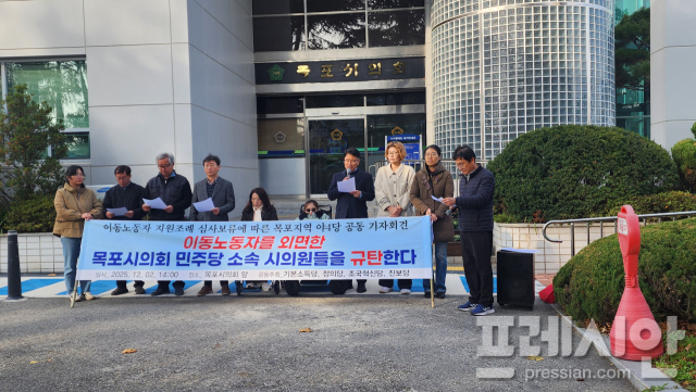 목포지역 기본소득당·정의당·조국혁신당·진보당은 2일 목포시의회 앞에서 공동 기자회견을 열고, 지난 11월 26일 관광경제위원회가 최현주 의원(정의당)이 발의한 '이동노동자 쉼터 설치 및 운영 조례안'을 심사 보류한 데 대해 "민주당 시의원들이 사실상 조례를 막았다"고 규탄했다.
