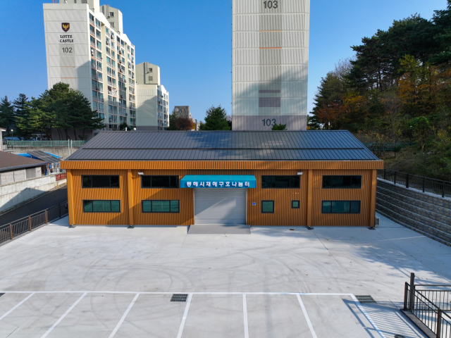 새롭게 완공된 재해구호나눔터는 천곡동에 위치하며, 연면적 392.61㎡ 규모의 지상 1층 단독 건물로 건립됐다.