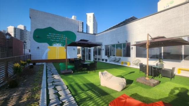 이번에 조성된 루프탑 라운지는 도서관의 상징성을 담은 감성 벽화 포토존, 데크와 인조잔디 휴게공간, 대형 파라솔, 조명들을 갖춰 도심 한가운데서도 편안한 쉼을 누릴 수 있는 공간으로 꾸며졌다.