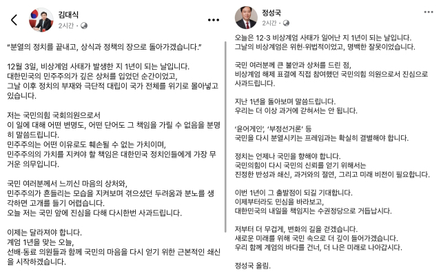 ▲12·3 비상계엄에 대해 사과의 뜻을 밝힌 김대식, 정성국 국민의힘 의원.ⓒ김대식, 정성국 의원 SNS 캡쳐
