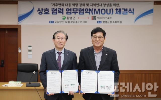 이상익 함평군수는 "GIST의 우수한 연구 역량과 첨단기술이 함평의 행정 경험, 지역 데이터와 융합해 더 큰 상승효과를 만들어내길 기대한다"며 "기후변화와 지역 소멸이라는 시대적 과제를 함께 해결하며 대한민국의 혁신 미래를 개척하는 출발점이 되길 바란다"고 화답했다.