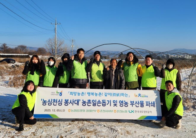 농협중앙회 강원본부(본부장 김경록)와 한국국토정보공사 강원지역본부(본부장 이강성)는 5일 춘천 중도동에서 춘천시지부(지부장 전성열)와 함께 춘천농협(조합장 박동엽)조합원 농가에서 기관합동 농촌일손돕기 행사를 했다.