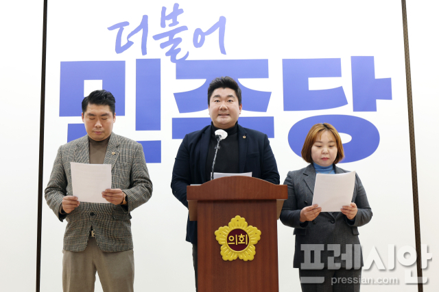 도의회 민주당 대변인단은 8일 도의회 브리핑룸에서 기자회견을 열고 "원인을 제공한 자가 직을 유지한 채 침묵으로 일관한다면, 이는 사태 해결이 아닌 갈등의 장기화이자 책임 회피에 불과하다"며 "양 위원장은 의회 파행에 대한 책임을 지고 사퇴하고, 국민의힘은 결단해야 한다"고 밝혔다.