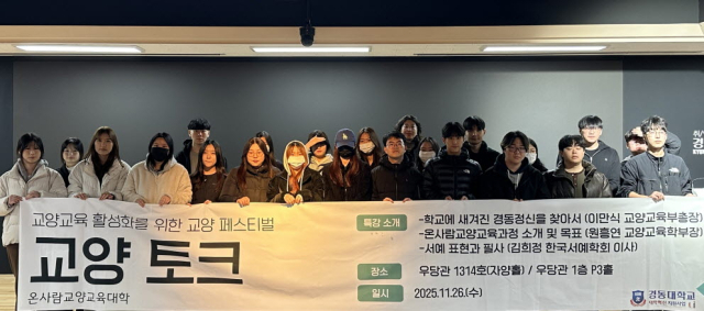 경동대학교(총장 전성용)는 11월 24일부터 12월 5일까지 “교양 페스티벌”을 진행했다고 밝혔다.