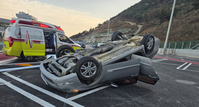 지난 8일 오후 4시 4분께 경북 포항~영덕고속도로 포항 방향 포항휴게소 진입로에서 승용차가 안내 구조물과 충돌한 뒤 전복되는 사고가 발생했다.