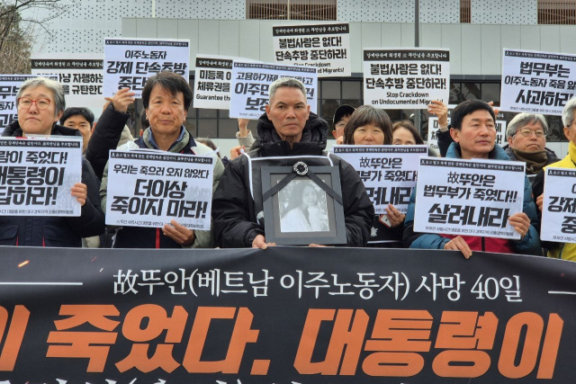 김희정 대구경북이주연대회의 집행위원장은 뚜안 씨가 숨진 강제단속과 관련해 "법무부는 국회의원들이 정보공개를 청구할 때마다 개인정보를 이유로 공개를 거부하고 있다"며 "도대체 무엇을 더 숨기려 하나. 뚜안 씨 부모님과 여기 모인 우리는 진상을 알아야겠다"고 강조했다.