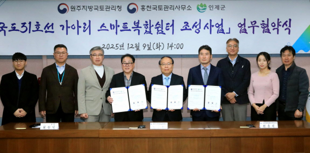 인제군과 원주지방국토관린청, 홍천국토관리사무소가 9일 인제군청 소회의실에서 ‘국도31호선 가아리 스마트복합쉼터 조성사업’ 추진을 위한 업무협약을 체결했다.