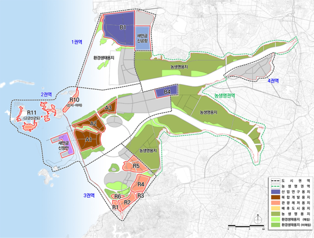 12일 전북 정치권에 따르면 새만금개발청은 지금까지 내부토지의 효율적인 활용을 위해 전체면적 약 291㎢를 4단계로 구분해 개발을 추진해 왔다.