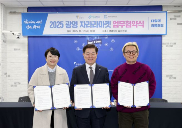 광명시는 이날 시청 중회의실에서 '함께힘깨주식회사'(대표 김주연)와 '페어스페이스'(대표 구민근) 등 두 기업과 ‘광명에서 자라라마켓 업무협약’을 체결했다.