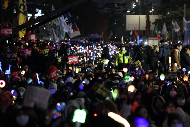 ▲ 2024년 12월 11일 오후 서울 여의도 국회 앞에서 열린 윤석열 대통령 탄핵 촉구 촛불 집회에 참석한 시민들이 구호를 외치고 있다. ⓒ연합뉴스