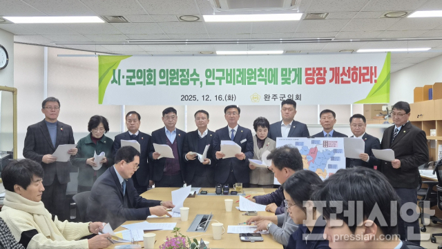 2025년 11월 기준 완주군 인구는 10만 520명으로 정읍시와 비슷한 규모지만, 기초의원 수는 정읍시(17명)보다 6명 적은 11명에 그치고 있다. 인구가 더 적은 남원시(16명)와 김제시(14명)보다도 의원 수가 적어, 완주군만 상대적으로 과소대표 상태에 놓여 있다는 것이 군의회의 설명이다.