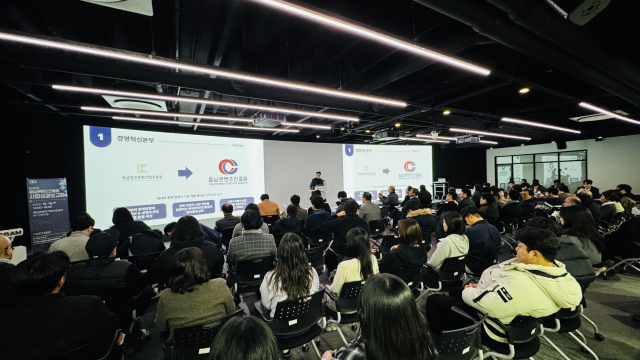 ▲16일 충남콘텐츠기업지원센터에서 열린 ‘2025년 충남콘텐츠진흥원 사업 성과보고회’에서 관계자와 콘텐츠 기업 종사자들이 경영전략과 주요 성과 발표를 청취하고 있다 ⓒ충남콘텐츠진흥원