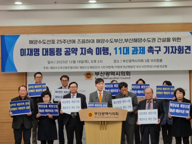 해양수도부산발전협의회 등은 18일 오전 부산시의회에서 기자회견을 열고 '해양수도 부산'을 위한 11대 과제를 제안하고 이를 이행할 것을 정부에 촉구했다.