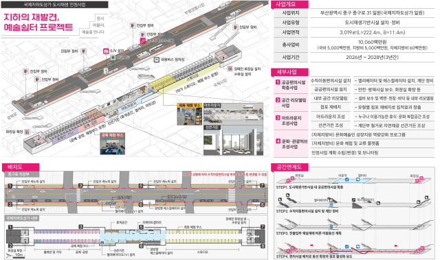 사업 대상지별로 살펴보면 중구 광복·부평동은 '지하의 재발견, 예술쉼터 프로젝트'를 주제로 국제지하도상가 내 부족한 화장실과 휴식 공간을 확충하고 공연·전시 등 문화 행사를 도입한다. 동구 수정2동은 빈집을 100% 정비하고 임대주택을 공급과 집수리 확대 등 주거 환경 개선에 주안점을 둔다.