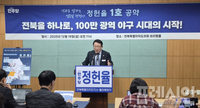 정 시장은 19일 전북특별자치도의회에서 기자회견을 열고 “전북은 이제 각자의 길이 아니라 하나의 방향으로 움직여야 할 때”라며 “100만 광역야구는 한 도시가 모든 부담을 떠안는 방식이 아니라 전북 전체가 역할을 나눠 함께 키우는 모델”이라고 밝혔다. 그는 “전북의 인구 구조와 생활권, 기존 인프라를 고려하면 광역 연대 방식이 가장 현실적인 선택”이라고 덧붙였다.
