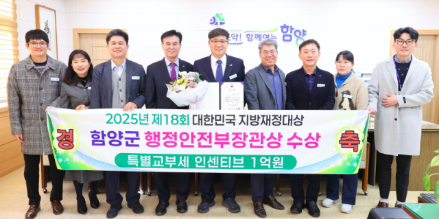 경남 함양군이 행정안전부가 주관하는 '2025년 제18회 대한민국 지방재정대상'에서 우수사례로 선정돼 행정안전부 장관상을 받으며 특별교부세 1억 원을 확보했다.