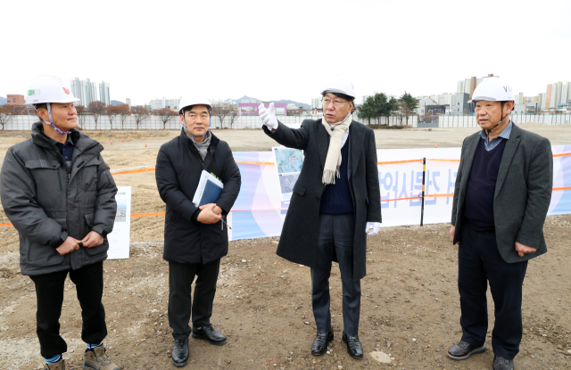 이날 우 시장은 가설사무소 구축 상황을 비롯해 근로자 안전 수칙 준수 여부, 비상대응체계 마련 상태, 안전 장비 구비 여부 등 현장 관리 전반을 살폈다.