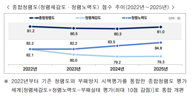 ▲종합청렴도(청렴체감도·청렴노력도) 점수 추이(2022년∼2025년).ⓒ국민권익위