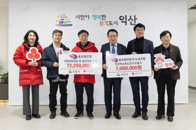 동우화인켐㈜(공장장 이연배)는 29일 익산시청을 찾아 지역사회 상생과 나눔 문화 확산을 위해 성금 7925만 원을 기부했다.