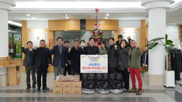 경상북도문화관광공사는 세쌍둥이의 아버지가 된 서상환 대리에게 김남일 사장과 전희찬 노동조합 위원장이 지난 23일 보문골프클럽을 방문, 세쌍둥이용 카시트와 기저귀, 산모용 미역 등 출산·육아에 필요한 물품을 전달하며 축하와 격려의 뜻을 전했다.