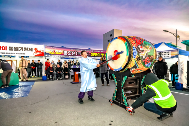 해가 떠오르는 순간에는 군수와 주요 내빈이 함께한 해맞이 리본 커팅이 진행돼 병오년 새해의 공식적인 출발을 알렸다. 이후 풍물 한마당을 통해 군민들이 함께 어울리며 화합의 시간을 가졌다.