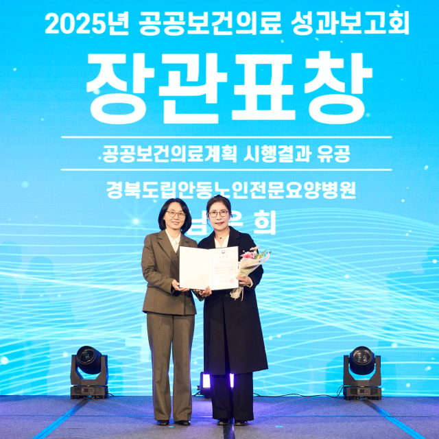 경북도립안동노인전문요양병원이 2025년 공공보건의료 성과보고회에서 ‘공공보건의료계획 시행결과 우수기관’으로 선정돼 보건복지부 장관상(단체 부문)을 수상하는 영예를 안았다.