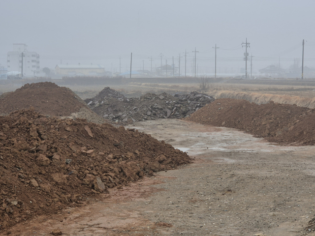 <프레시안>이 지난해 12월 24일 현장을 확인한 바 농지 전반에 걸쳐 대규모 폐기물로 추정되는 성토재가 그대로 쌓여 있는 모습이 확인됐다.
