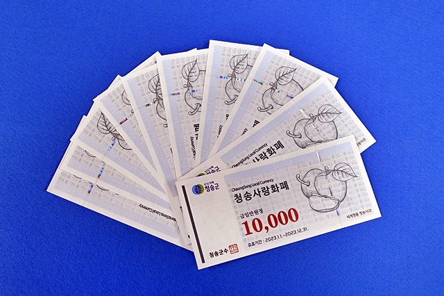 한편, 청송군은 할인율 상향에 따른 부정 유통을 사전에 차단하기 위해 지속적인 지도·점검과 단속을 실시하고, 청송사랑화폐의 투명하고 건전한 유통 질서 확립에 행정력을 집중할 계획이다.