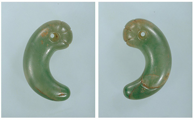 그 가운데 '전(傳) 경상북도 경주 금관총', 즉 경주 금관총에서 출토된 것으로 추정되는 곡옥이 한 개 포함되어 있다. 이 곡옥은 길이가 4.7㎝이고, 연두색의 경옥으로 만들어졌으며, 머리 부분 앞쪽에 세 줄의 음각이 새겨져 있는 것이 특징이다.