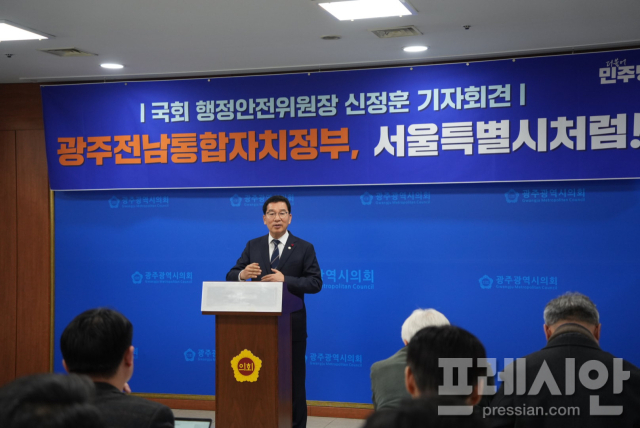 올해 전남지사 선거에 출마하는 신정훈 국회 행정안전위원장이 "광주·전남 통합 특별법의 신속한 국회 통과를 책임지겠다"고 밝혔다.