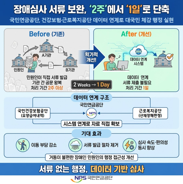 김성주 이사장은 "앞으로는 그럴 필요가 없다. 공단이 건보 등과 연계해 단 하루 만에 모든 서류를 기관으로부터 직접 입수하게 된다"며 "이렇게 되면 보통 2주 이상 걸리던 자료 확보 기간이 하루면 해결된다"고 강조했다.
