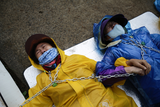 평생 시골에서 살아온 할머니들이 옷을 벗었다. 손주뻘 경찰, 용역들 앞에서. 초고압 송전탑 예정지에 구덩이를 파 서로의 몸을 쇠사슬로 묶고 누웠다. 경찰이 사지를 들고 끌어내기 시작했다. 비명이 난무하고 몸부림치던 할머니들이 실신한다. 경찰에 이미 제압당한 할아버지들은 이 충격적인 모습에 울부짖는다. 검은 머리 파뿌리 되도록 함께 살아온 아내가 젖가슴을 드러낸 채 짐짝처럼 끌려간다. 단발마적 비명이 산골짜기를 가로질러 표창처럼 날아다닌다."할멈!" "야 이놈들아!"