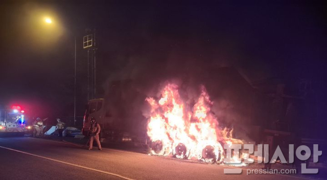 당국은 화물차 뒷바퀴에서 불이 시작된 것으로 보고 정확한 화재 원인과 피해 규모 등을 조사할 방침이다.