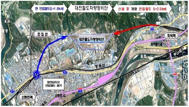 철도차량 점검·정비를 위해 대덕구 평촌동 한국철도공사 대전차량관리단으로 진입하는 기존 노선의 안전 및 생활불편 해소가 목적이다.