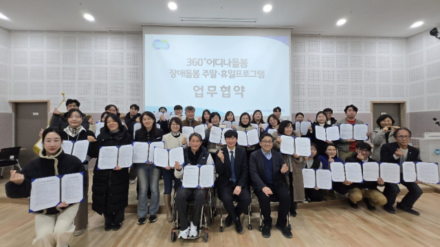 지난 21일 북부누림센터에서는 ‘360도 어디나 돌봄 장애 돌봄 주말·휴일 프로그램 운영’ 선정기관 협약식과 오리엔테이션이 열렸다. 이번 사업에는 총 31개 기관이 선정됐으며, 이 가운데 23개소는 최종 선정, 8개소는 조건부 선정됐다.