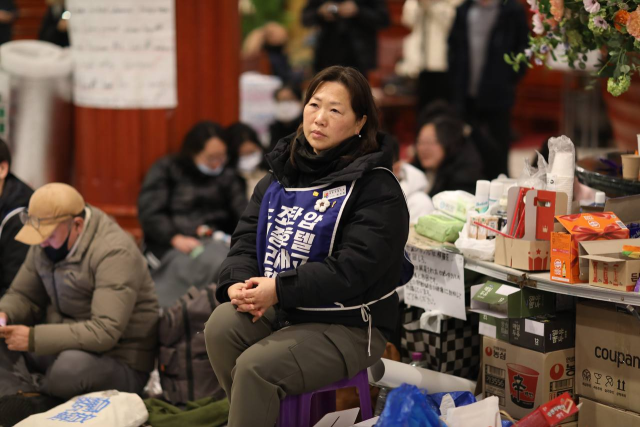 너무 화나서, 시작한 연좌인데 막상 시작하니까 막막했어요. '첫날에 100명 넘던 대오가 다 사라지고 조합원만 남으면 어떡하지', '내가 잘못 판단한 거면 어떡하지.' 지금도 솔직히 무서워요. 동지들이 '옆에 앉아준다'는 게 지금 제게 가장 큰 응원이에요. 윤석열 탄핵광장의 연대시민이 세종호텔 투쟁에 함께 해주고 있는데요. 매일 로비를 가득 채우고 있어요. 점점 많아지고 있어요.
