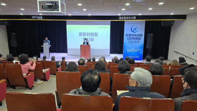 30일 오후 2시 포항시 북구 포은중앙도서관 어울마당에서 포항지속성장시민위원회(약칭 포성위) 창립위원 100여 명과 시민 100여 명 등 200여 명이 모여 포성위 창립대회를 열었다.