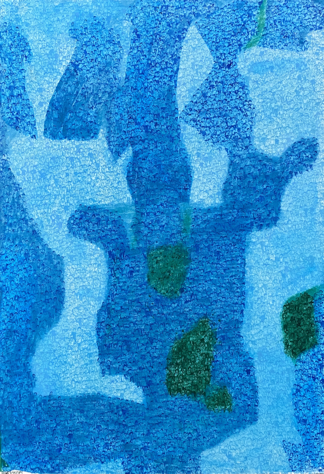 김 작가의 작품 세계는 회화적 언어로 사라짐을 기록하는 일종의 ‘기억의 예술’이다. 작품의 화면은 바람에 흩날리는 잊혀지는 이름들의 합창처럼 보인다. 멀리서 바라보면 고요한 색의 바다 같지만, 가까이 다가서면 그 안에는 수천, 수만의 인간 존재가 밀물처럼 밀려온다.