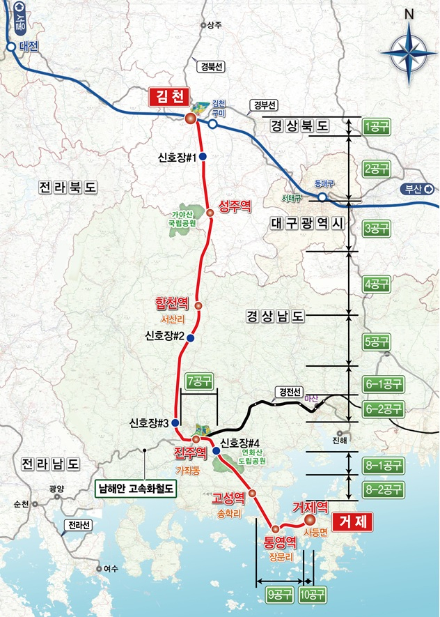 수도권과 남해안을 잇는 남부내륙철도(김천~거제) 건설 사업이 성주군 공구의 공사 계약 체결과 함께 본격적인 궤도에 올랐다.