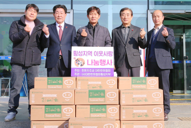 3일 대한한돈협회 횡성군지부(지부장 전길석)는 ‘횡성사랑 십시일반운동’에 동참하며 돼지고기 전지 260kg(400만 원 상당)을 쾌척했다.