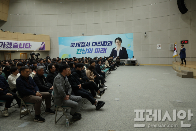 이 최고위원은 3일 전남도청 왕인실에서 열린 제301회 전남포럼에 강사로 나서 '국가질서 대전환과 전남의 미래'란 주제로 강연을 펼쳤다. 그는 이날 도청 공무원들에게 "정부가 드라이브를 걸 때 적극적으로 (상승곡선에)올라타야 한다"고 주문했다.