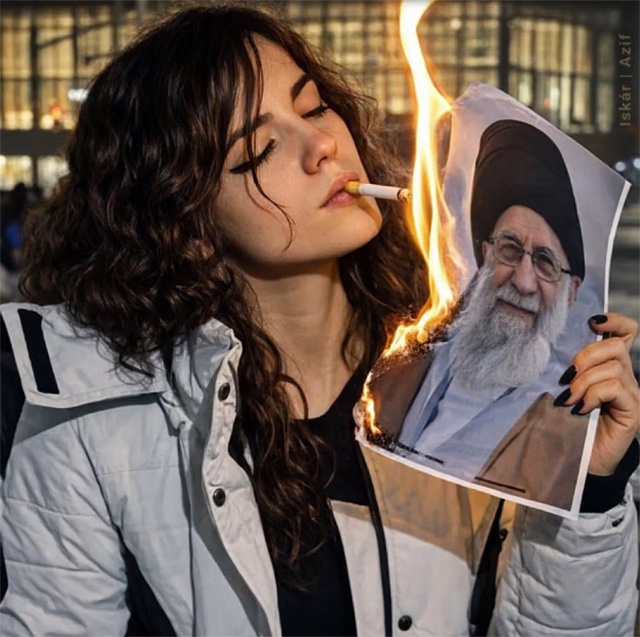 이 과정에서 상징적인 저항의 장면들이 쏟아졌다. 캐나다로 망명한 이란 출신의 한 난민 여성이 이슬람공화국의 신성불가침 영역인 최고지도자 알리 하메네이의 초상화에 담뱃불을 붙여 태우는 영상은 소셜미디어를 통해 전 세계로 확산되었다. 이는 단순한 반항을 넘어 40여 년간 이란 사회를 지배해온 공포의 상징 체계가 완전히 붕괴했음을 선언하는 상징과도 같았다.